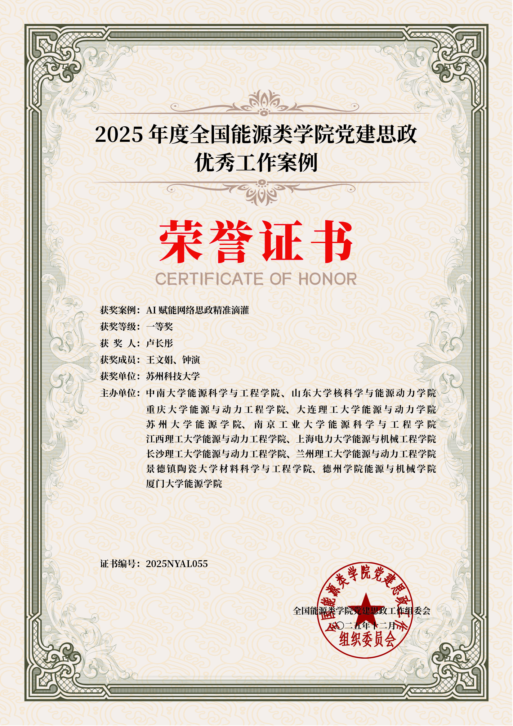 近日,2025年度全国能源类学院党建思政优秀工作案例评比结果揭晓,材料科学与工程学院卢长彤、王文娟、钟演老师撰写的工作案例《AI赋能网络思政精准滴灌》获评全国一等奖。