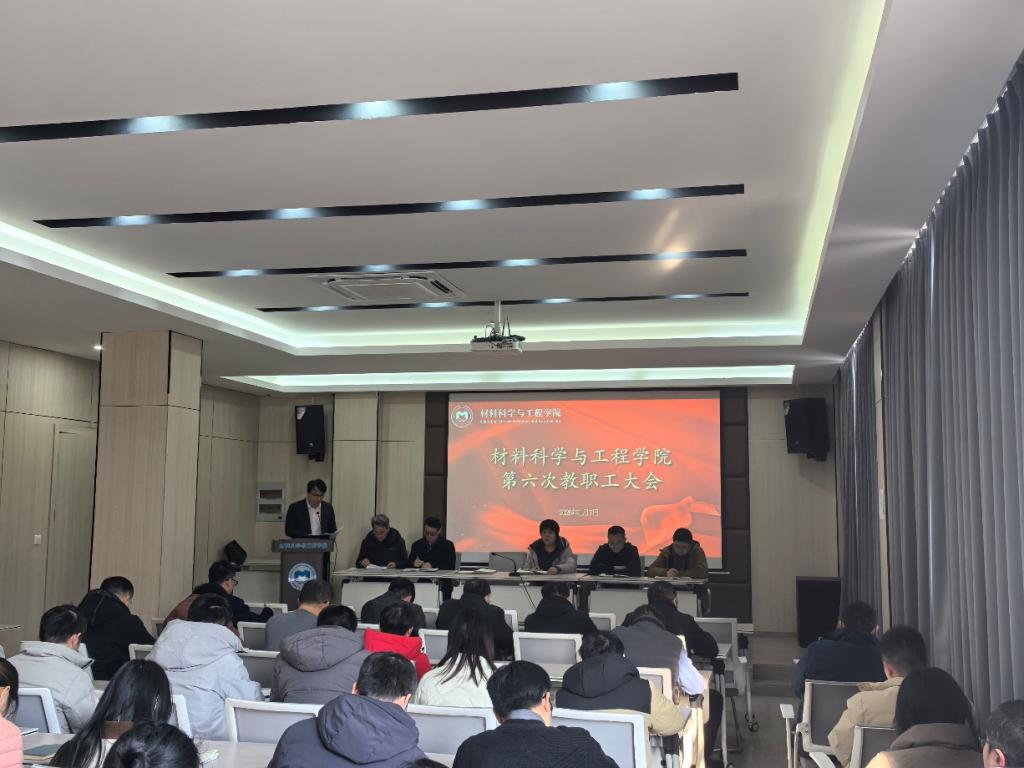 2026年1月7日下午,材料科学与工程学院召开第六次教职工大会,大会由学院工会主席李宛飞主持。