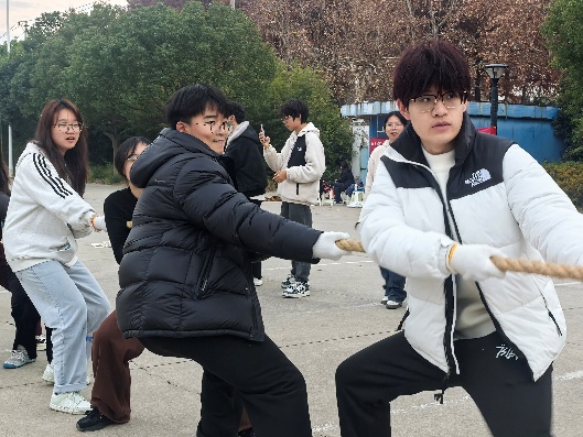 为丰富校园文化生活,增强大学生身体素质,12月19日,由学生处主办、材料科学与工程学院承办的“勤思”一站式学生社区冬季三项比赛顺利开展。比赛设踢毽子、一分钟跳绳、集体跳大绳及拔河四个项目,兼具趣味性与竞技性,吸引了众多学生参与。