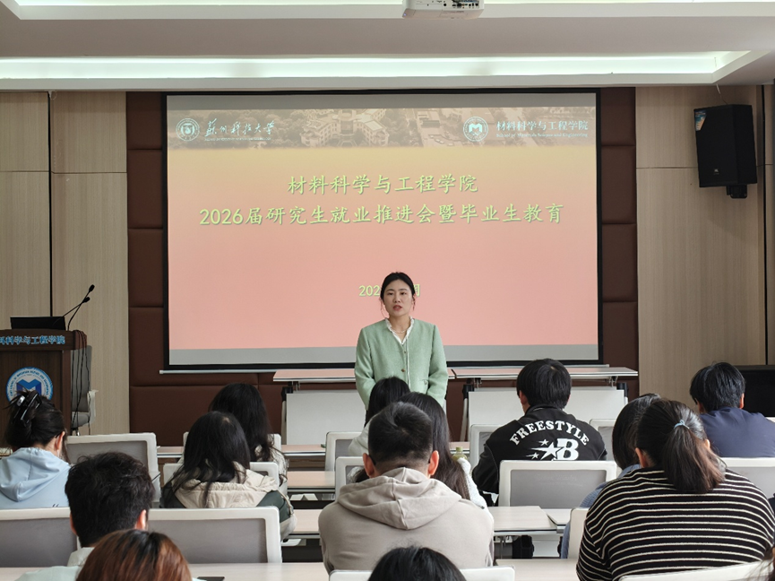 4月10日上午,材料科学与工程学院在院士楼报告厅召开2026届研究生就业推进会暨毕业教育活动。辅导员王文娟老师主持会议,全体2026届研究生参会。