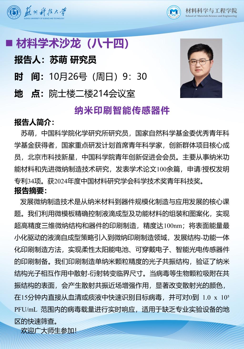材料学术沙龙八十四:纳米印刷智能传感器件