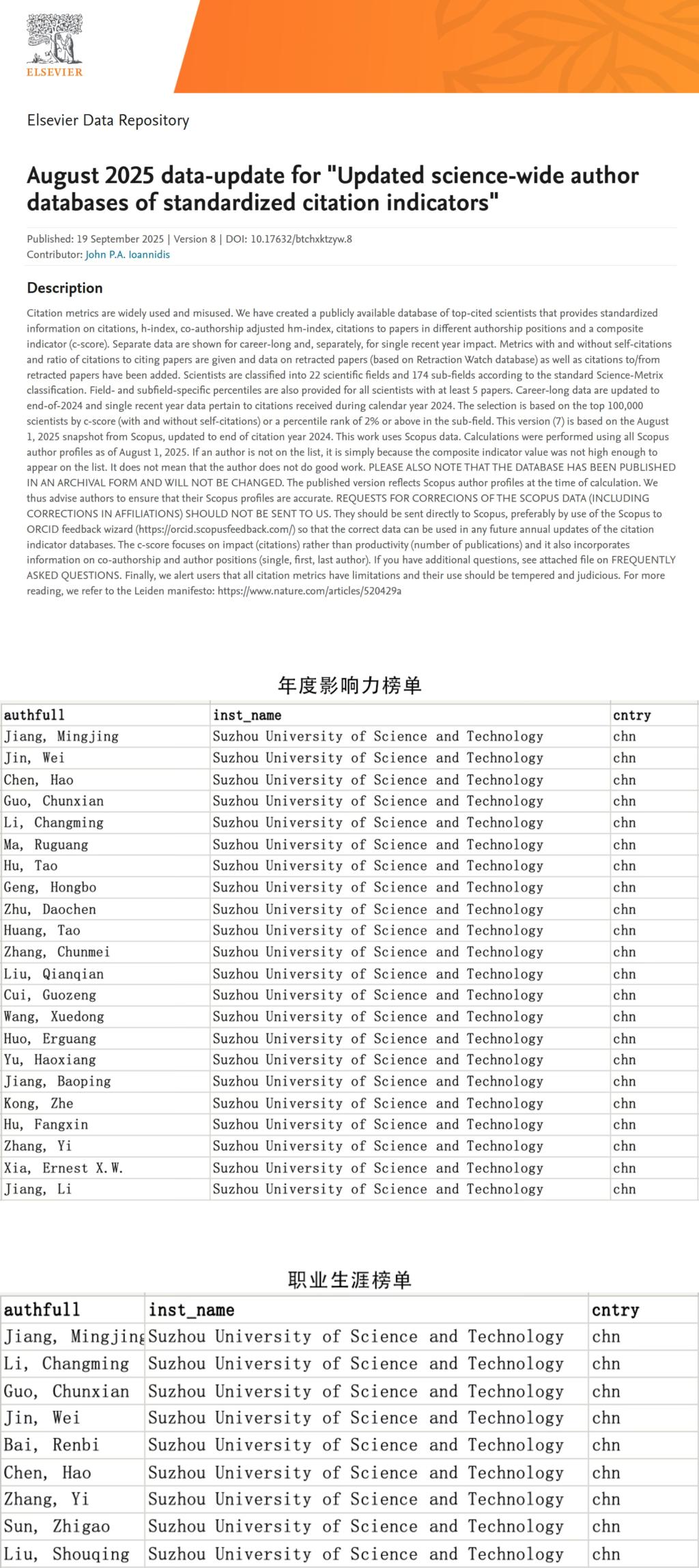 据悉,该榜单从全球约700万名科学家中遴选出世界Top2%的科学家,包括了22个学科领域和176个子学科领域,综合评估科学家长期科研表现及影响力,包括“职业生涯影响力排行榜”和“年度影响力排行榜”两个榜单。其中,“职业生涯影响力”关注科研人员整个学术生涯迄今的影响力,“年度影响力”则聚焦科研人员本年度的学术成就。