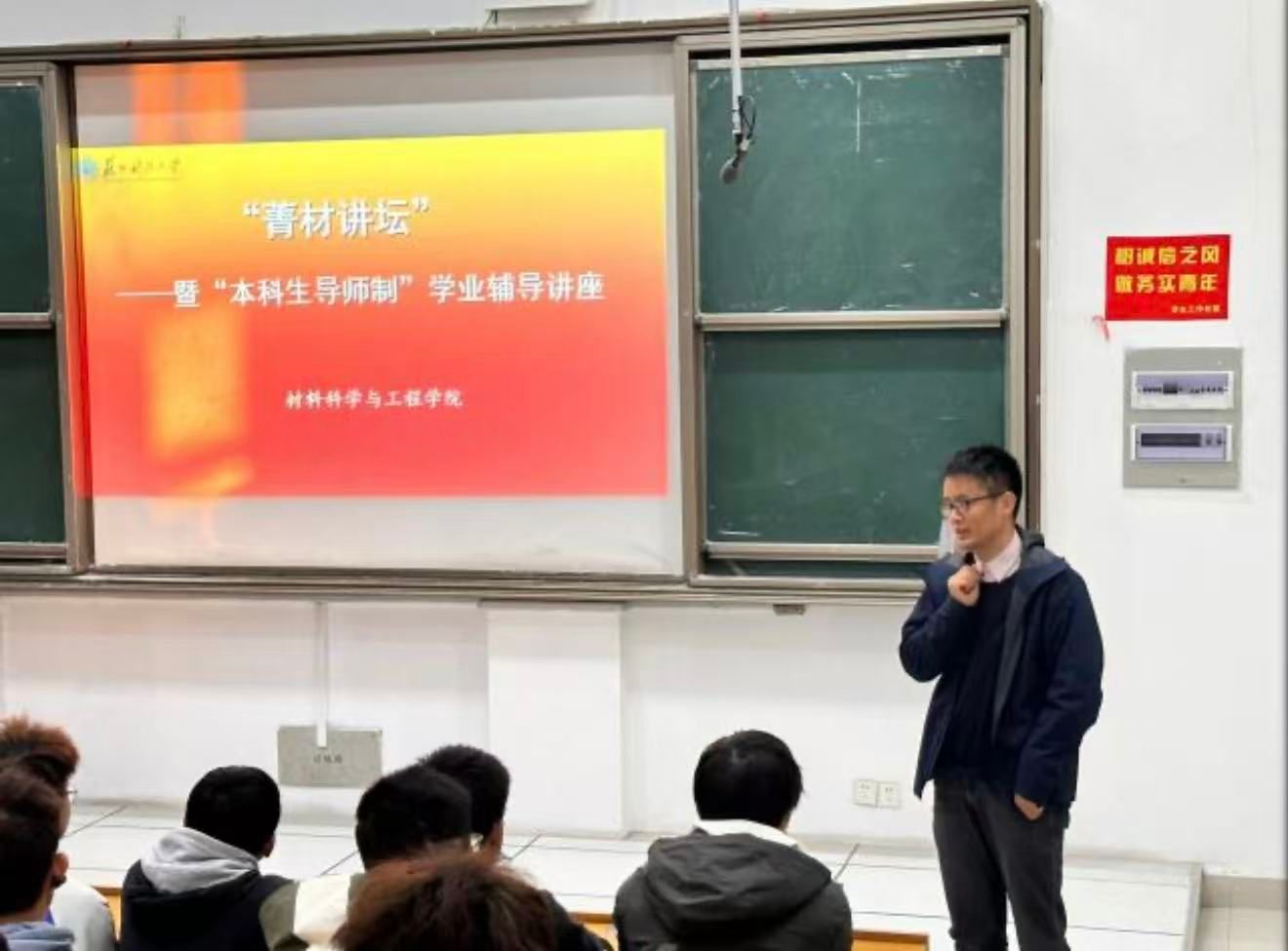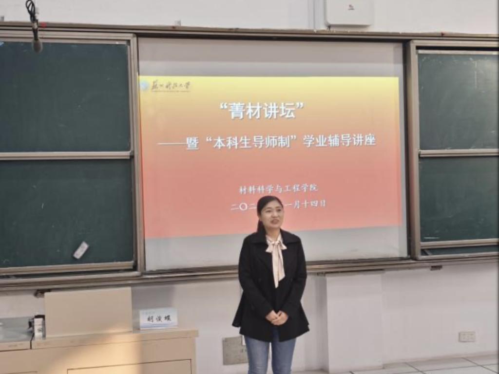 11月14日,材料科学与工程学院开展“菁材讲坛”暨“本科生导师制”学业辅导讲座。本期讲座主讲人为学院新能源教师党支部、本科生导师、副教授胡俊蝶老师。学院党委副书记兼副院长李永丹、副院长杨晓刚及新生班主任们出席本次活动。