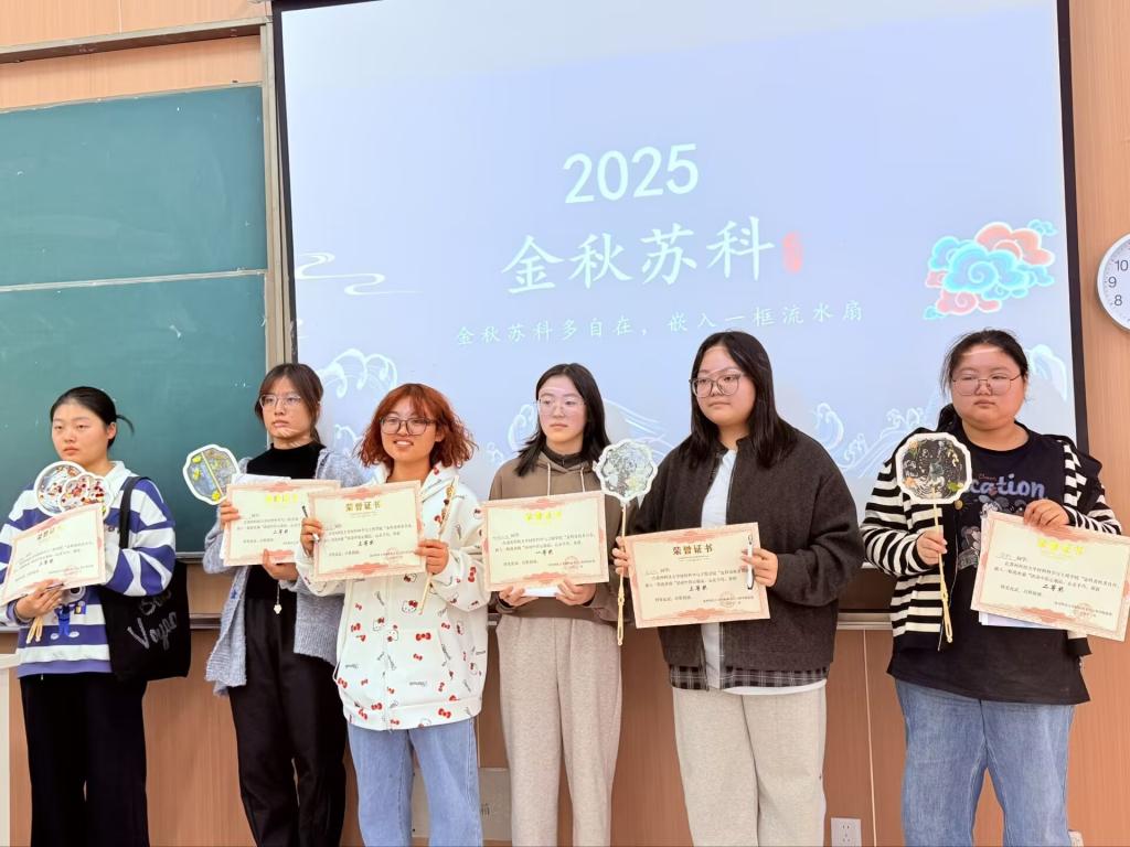 现场还设置了作品展示与互评环节。参与者在交流中互相学习、彼此启发,部分优秀作品的作者荣获证书奖励,并手持自制水扇合影留念,为金秋时节定格下一段充满成就与欢笑的记忆。