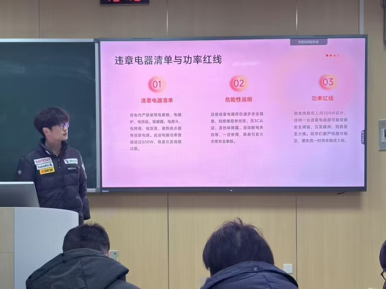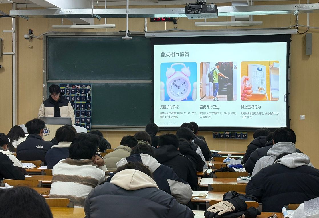 学院坚持教育引导与行为管理相结合。各班级组织召开了“宿舍安全记心间,平安校园共守护”主题班会,结合近期高校案例与《学生手册》中关于宿舍安全管理的相关规章制度,深入讲解消防安全、用电安全知识。班会通过案例分析、图片展示、互动讨论等形式,使学生深刻认识到安全无小事,自觉承诺遵守宿舍管理规定,主动参与到安全环境的维护中来。此次系列班会有效提升了学生的安全防范意识和自主管理能力。