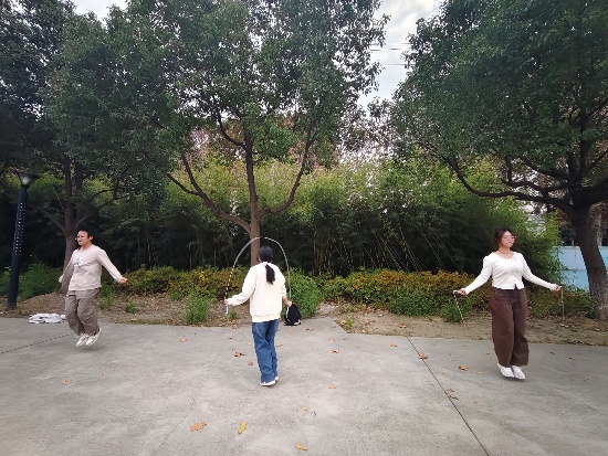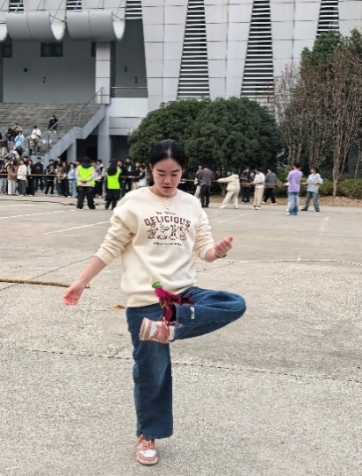 集体跳大绳赛场人声鼎沸,气氛热烈。各学院代表队依次登场,队员们目光专注,脚步轻盈,看准节奏鱼贯而入,在绳起绳落间灵活跃动,每一次顺利通过都引来阵阵喝彩。