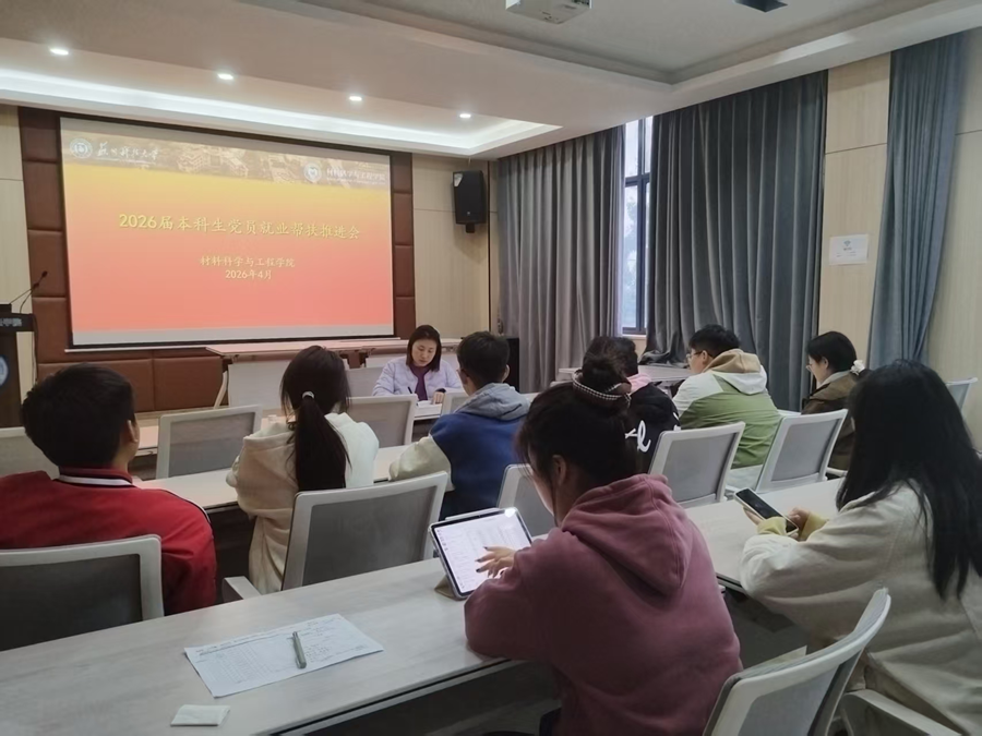 4月13日下午,材料科学与工程学院在院士楼报告厅召开2026届本科生党员就业帮扶推进会,会议由辅导员王文娟老师主持,学院全体本科生党员参加。